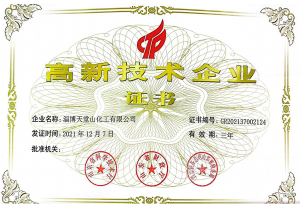 公司產(chǎn)品符合國(guó)家的產(chǎn)業(yè)政策,各種手續(xù)齊全,通過(guò)了環(huán)保、衛(wèi)生、消防、安全生產(chǎn)許可等各項(xiàng)驗(yàn)收,企業(yè)化學(xué)品安全標(biāo)準(zhǔn)化三級(jí)達(dá)標(biāo)驗(yàn)收,并且通過(guò)了ISO9001質(zhì)量管理體系認(rèn)證、ISO14001環(huán)境管理體系、ISO45001職業(yè)健康管理體系,先后被有關(guān)部門(mén)授予“市級(jí)重合同守信用企業(yè)”“消費(fèi)者滿(mǎn)意單位”“質(zhì)量、計(jì)量管理先進(jìn)單位”“勞動(dòng)關(guān)系和諧企業(yè)”“企業(yè)免檢單位”“淄博市專(zhuān)精特新中小企業(yè)”“山東省化工明星單位”“山東化工發(fā)展?jié)摿?0強(qiáng)”“淄博市智能車(chē)間”“山東省創(chuàng)新型中小企業(yè)”“科技型中小企業(yè)”“高新技術(shù)企業(yè)”“山東省專(zhuān)精特新”等稱(chēng)號(hào)。